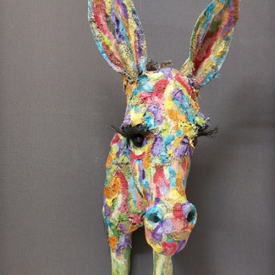 Een heerlijk kleurrijk ezeltje...In opdracht gemaakt. Verzoek was er een 'veldboeket' gevoel in te leggen. Ook geïnteresseerd in een eigen dierobject op maat gemaakt... Neem gerust contact op dan kunnen we vrijblijvend de mogelijkheden onderzoeken!
