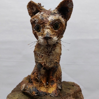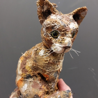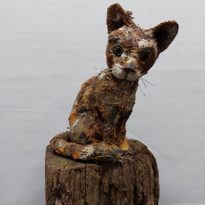 Altijd leuk om weer uitgedaagd te worden iets nieuws te maken! De vraag was of ik een klein katje kon maken dat in de kast kon zitten...Natuurlijk ben ik de uitdaging aangegaan. Een kleine 'lapjeskat' is ontstaan. Het kopje kan draaien zodat hij altijd goed de kamer rond kan kijken. Ook geïnteresseerd in een dergelijk object...Neem vrijblijvend contact met mij op om de mogelijkheden te ontdekken.