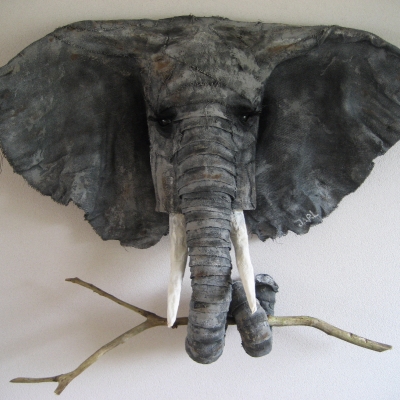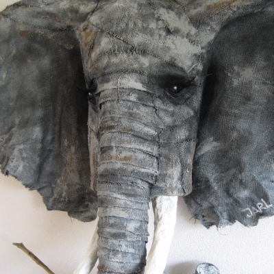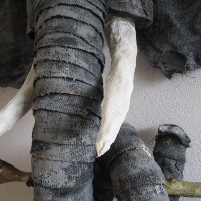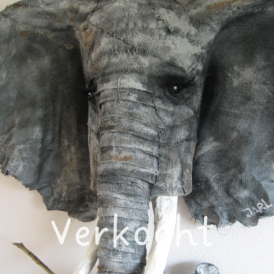 Formaat: (H:80 B:80 D:35) Materiaal:grof jute en witte verf. Het is een handzaam en bescheiden olifantje met een krachtige uitstraling. Gelukkig heeft hij een prima plek gevonden in een prachtige woning in Bergen. Het is uiteraard een optie een dergelijke olifant op maat en op kleur te laten maken.