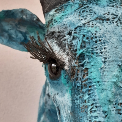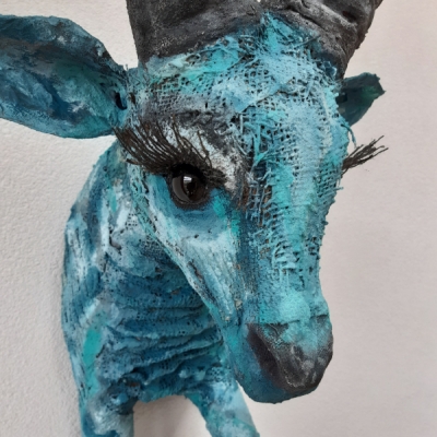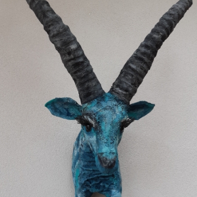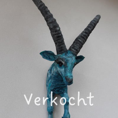 Dit steenbokje is onderdeel van een nieuwe serie wat kleinere dierobjecten. De totale hoogte is 90 cm.