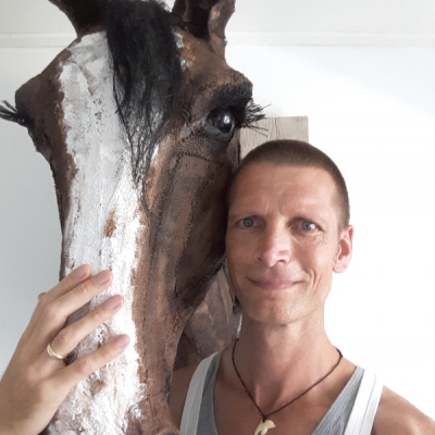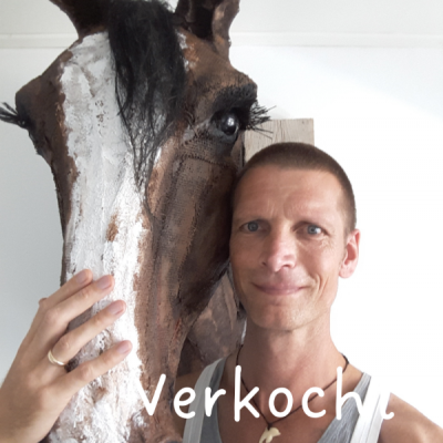Stoer Paard dat vrijheid en kracht uitstraalt. Opgebouwd met jute, vlas, verschillende soorten verf. Inmiddels heb ik deze'free spirit' los moeten laten...Gelukkig is hij bij een fijn stel mensen terecht gekomen!
