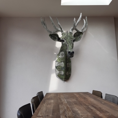 Hert in boskleuren. Prachtige rustige eyecatcher. Met heel veel plezier aan gewerkt. Deze fijne vriend heeft een prachtige plek gevonden in een bijzonder huis in Noord-Holland...Kijkt daar uit over de duinen!! Mocht je interesse hebben in een dergelijk object...neem gerust contact met mij op.